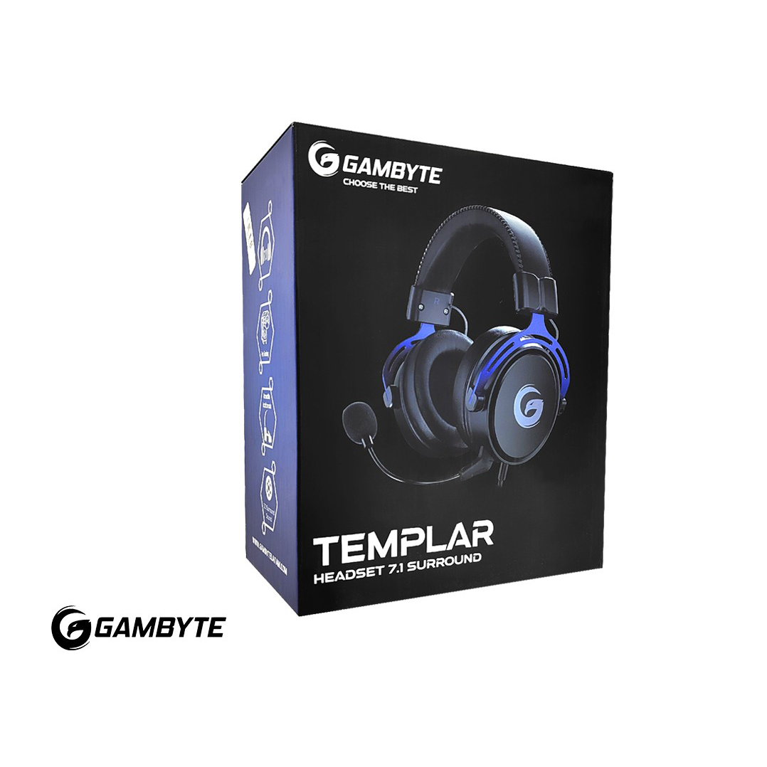 AURICULAR GAMBYTE TEMPLAR, COLOR AZUL, GAMING SURROU 7.1, CON MICROFONO, ENTRADA JACK, PARA JUEGOS, ALMOHADILLAS SUAVES (BMBH439)