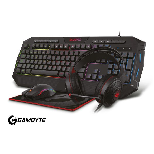 COMBO 4 EN UNO GAMBYTE GRYPHUS-H, TECLADO CON ILUMINACION RGB, MOUSE ILUMINACION RGB, AURICULAR NEGRO RGB, PAD MOUSE, INTERFAZ USB (GI-GRYPHUS-H)
